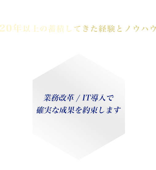 私自身は、停滞する事業からの脱却や、新しい事業を開拓するときの"業務改革"や"IT投資"といった施策・活動で、確実な成果をお約束する実績を持っています。