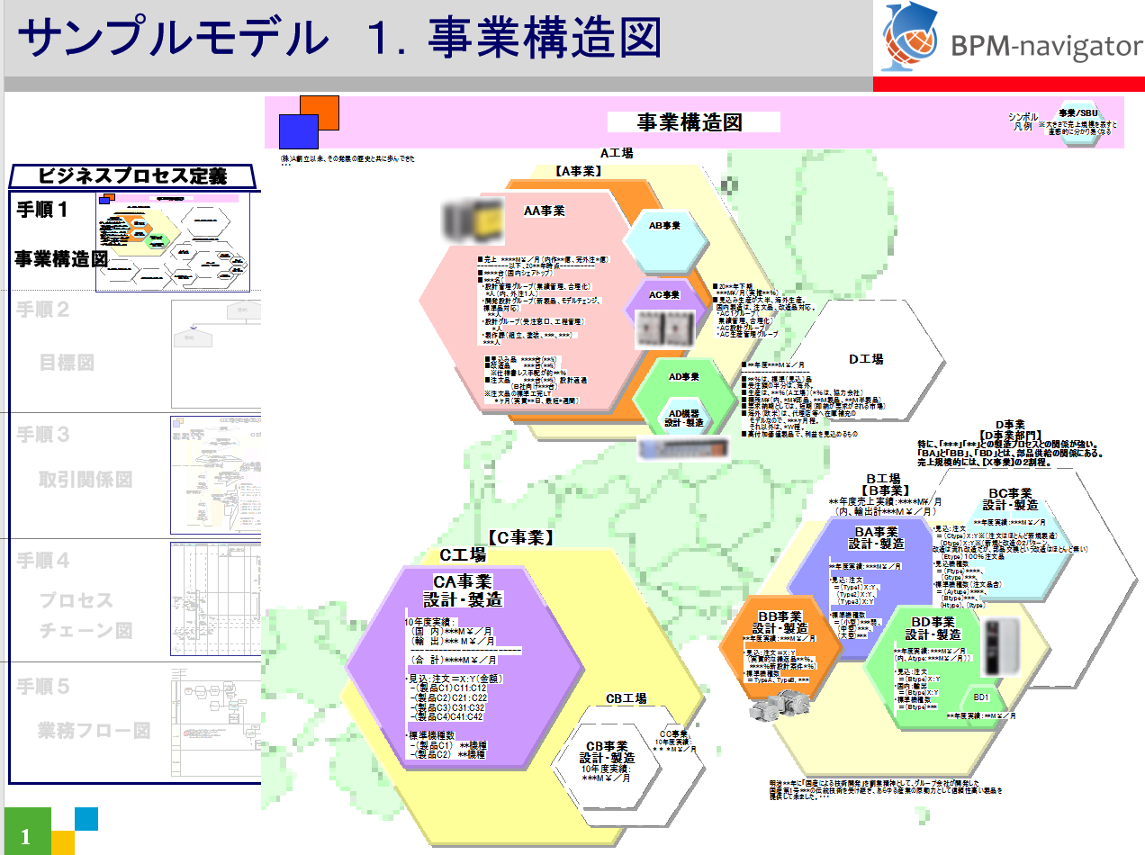 | 手順1 | 事業を捉える:成果の規模・範囲を決めるために必要不可欠。 | 事業構造図 |