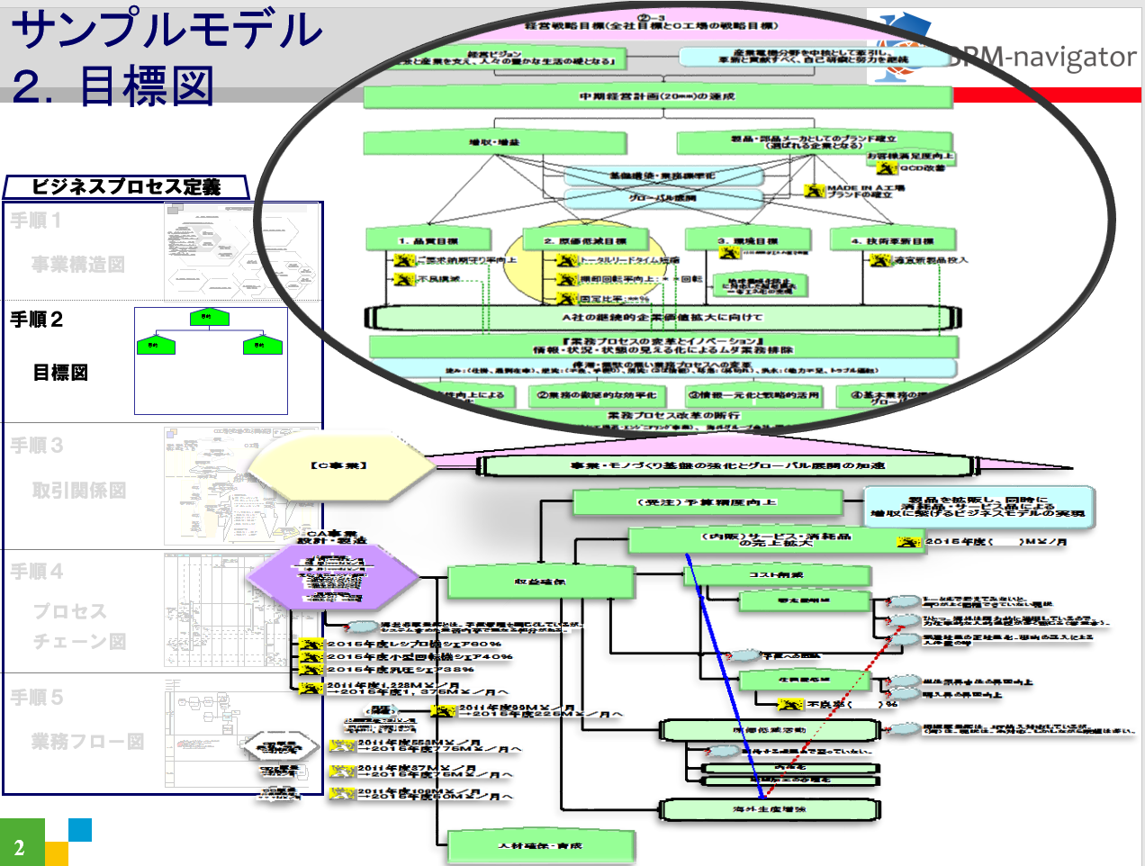 | 手順2 | 目標を捉える:業務フローの記述範囲・細かさを判断するために必要不可欠。 | 目標図 |