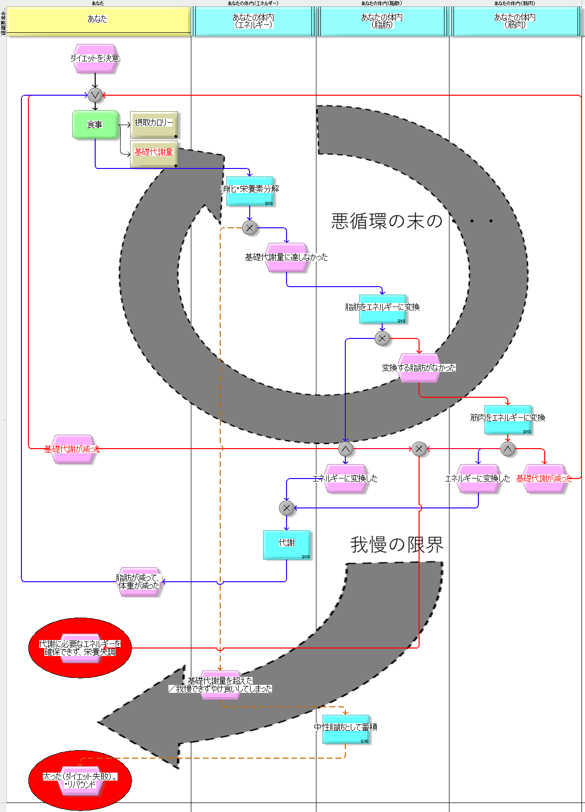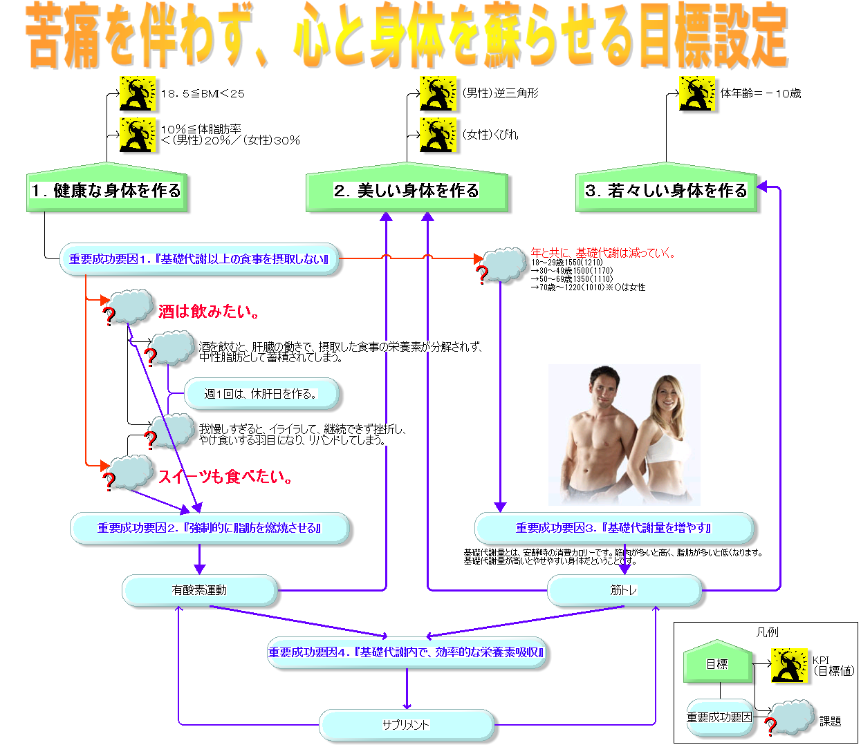 ここでひとつ、コンテンツの完成度はさておき、「モデリングの意義」について、提議させていただくなら、世の中には、多くのDiet製品や諸説出回っていますが、なかなか”いいとこ取り”して、簡潔にまとまったモデルは見かけない気がします。
